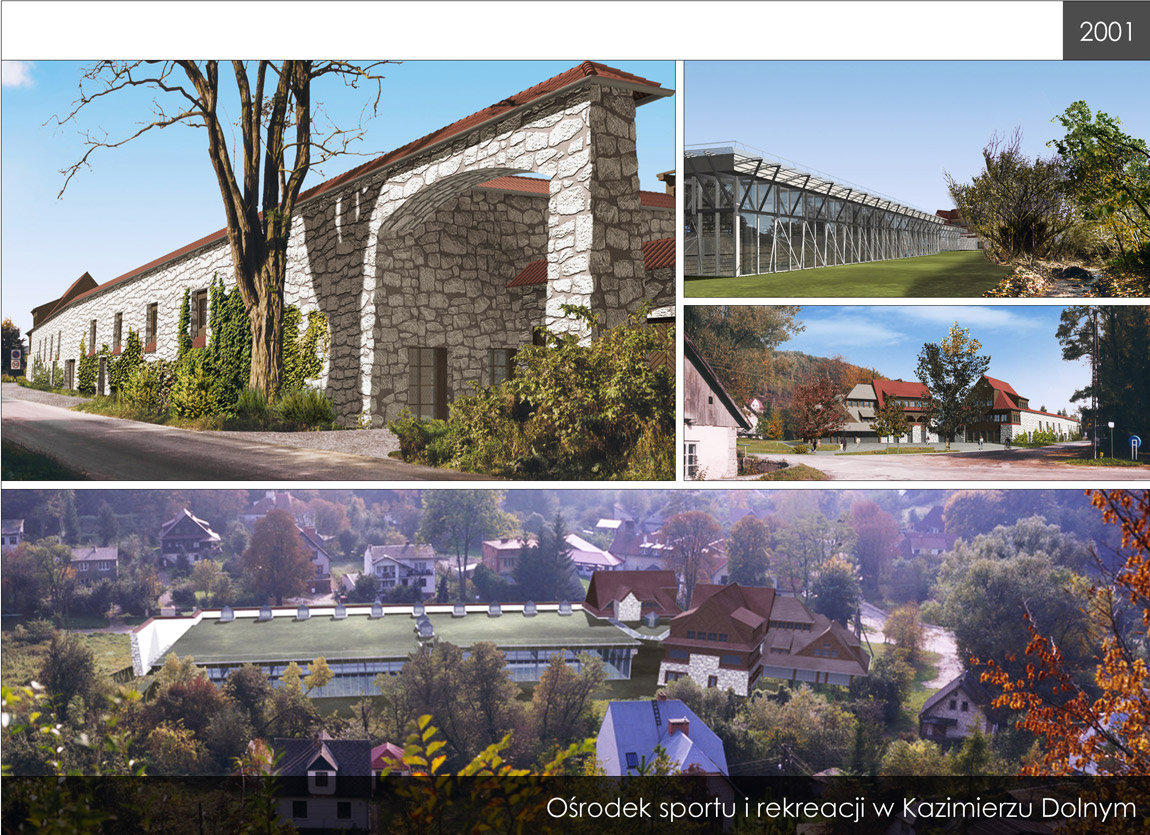 | Projekt koncepcyjny ośrodka sportu i rekreacji przy szkole podstawowej w Kazimierzu Dolnym | konkurs Urzędu Gminy | dla arch. Zbigniewa Badowskiego |